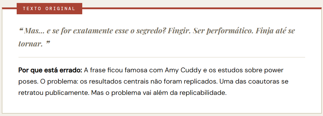 O conselho “fake it till you make it” virou senso comum. Mas a pesquisa empírica não o sustenta — e em vários contextos ele é ativamente prejudicial. Não porque ser iniciante seja errado. Mas porque fingir competência e desenvolver competência são processos opostos.